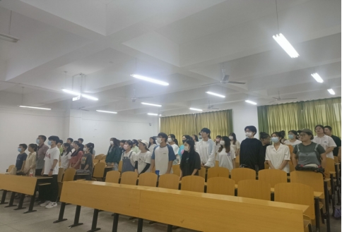 奏唱《国际歌》后,全体起立,13位新发展的党员上前向党旗致敬宣誓。全体党员重温入党誓词,字字有力、句句铿锵,宣誓了支部党员为党奋斗终生的决心。
