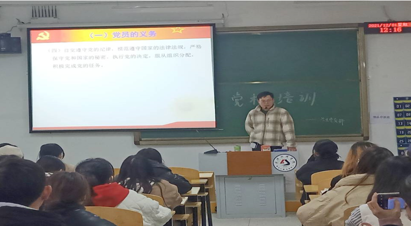 12月2日中午12:10-1:30在5-115教室,388vip太阳集团分团委书记杨帆老师,为我们讲授了以《党性修养是共产党人的终身课题》为主题的党课。让我们知道一名共产党人具有党性修养的重要性。