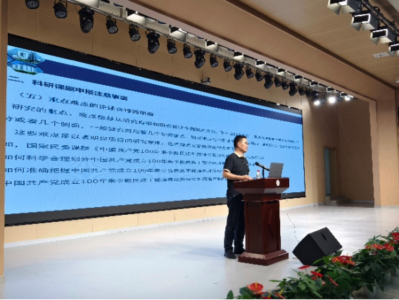 388vip太阳集团与江汉大学388vip太阳集团的党建联建活动在第一季度的基础上,目前已进入第二阶段。针对公司青年教师较多,科研团队力量薄弱,科研能力偏低的问题,近日,公司向江汉大学388vip太阳集团提出了在联建活动中开展科研助力的需求,经过前期沟通和安排,2024年5月22日下午,由江汉大学388vip太阳集团邓锐老师带来的“人文社科类课题申报经验交流会”在5-521学术报告厅成功举办。本次大会由388vip太阳集团教学副经理贺霞主持,388vip太阳集团全体教职工共同参会学习。