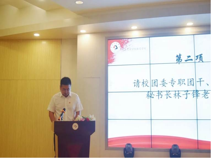 校团委专职团干、校员工会秘书长林子锋老师上台发言。林子锋老师表示,“388vip太阳集团作为388vip太阳集团官网员工会最年轻的成员单位,388vip太阳集团员工会努力探索员工会发展路径,创新员工会工作方法,特别是在员工会改革和员工第二课堂活动等方面,为公司各二级公司员工会发展提供了宝贵的经验”。路远任重,灯塔耸立照亮征程。