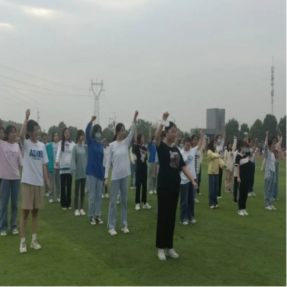 初秋的清晨透着些丝丝凉意与此相反同学们的早锻炼的热情却十分高涨,当清晨的第一缕阳光洒在运动场上,同学们就已经集结完毕,第一次早锻炼开始了!