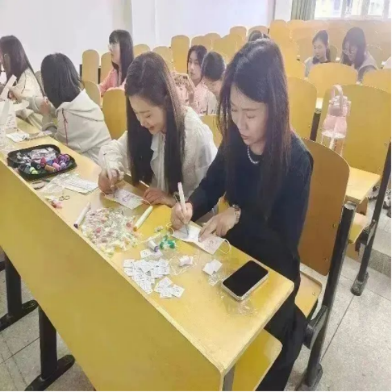 员工党支部书记高凯老师、统战委员高文佳老师、宣传委员刘心阳老师以及辅导员徐珊老师也加入到我们的活动当中与同学们一同进行创作,感受艺术创造的魅力!