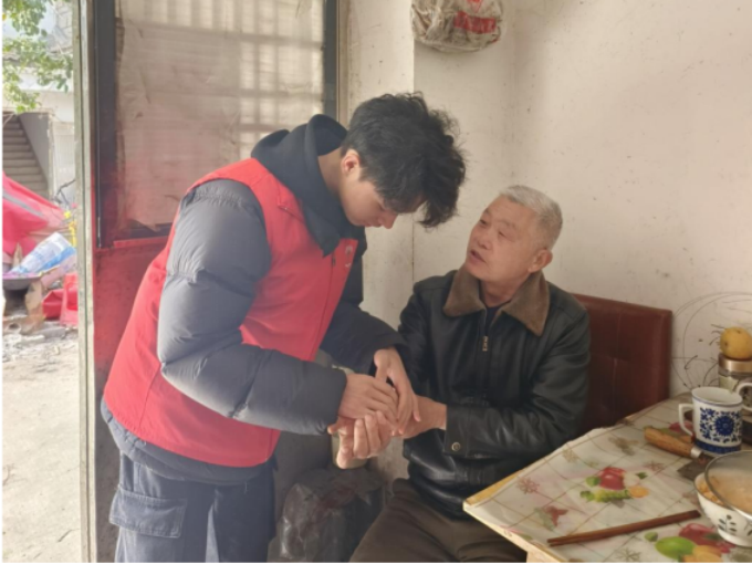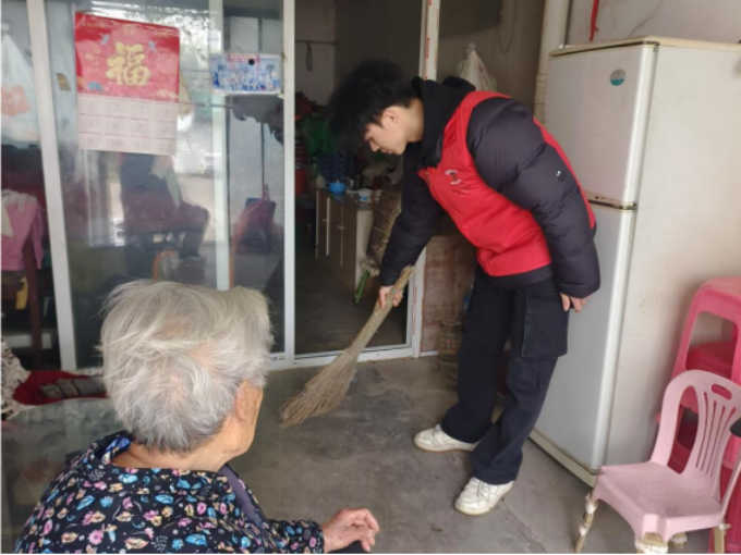 志愿者们跟随社区工作人员的脚步,挨家挨户上门为老人进行血压测量工作,询问了老人们最近的身体健康状况,帮助老人打扫家里卫生,和老人们聊聊天,倾听属于他们的故事。在最后志愿者们给老人们送上了社区工作人员准备的小礼物。