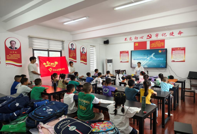 唱青春之歌,育思想之苗。思政课程着重传承了中国共产党人的精神谱系,以延安精神和遵义会议精神为蓝本,通过影视作品的生动呈现和小组讨论的深入交流,引领孩子们从伟大精神中汲取智慧与力量。以五旗教育为桥梁,服务队让乡村儿童深刻理解国旗、党旗等旗帜的深远象征,通过革命故事的激情讲述,将爱国理念根植于他们心中,点燃了孩子们对民族的热爱与自豪。团队充分利用当地红色资源,讲述当地先烈刘子泉的事迹,将革命精神的种子播撒在孩子们的心田,让“不忘初心,牢记使命”的信念在乡村儿童心中生根发芽。