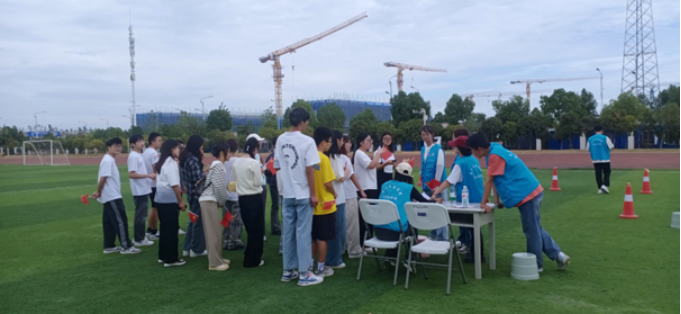 该项目需要参赛队伍排成一列,开始计时,第一位同学掷球,投中后跑去队尾,以此接力,规定时间内,投入次数最多的队伍获胜。同学们投身于精彩的投球角逐,身姿矫健、眼神坚定,手中的球仿佛承载着使命与希望。每一次奋力投掷,球在空中划过优美弧线,犹如璀璨流星,奏响激昂革命乐章。紧张热烈的氛围让校园沉浸在火热之中,同学们仿佛穿越回革命年代,亲身感受先辈们在枪林弹雨中的奋勇拼搏,无畏的勇气和坚定的信念如强大力量激励大家勇往直前。同时,这场游戏不仅锻炼了团队的协调能力,还提升了反应能力,在快速变化的局势中迅速做出决策,也让留校学子在投球竞争中感受团结的力量、关爱与情谊,回顾革命历史,传承红色基因,激发奋斗精神。