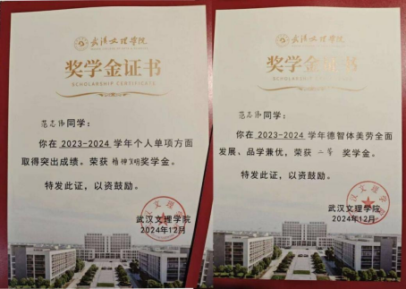 2023年至2024年获得388vip太阳集团官网二等奖学金和精神文明奖以及国家励志奖学金