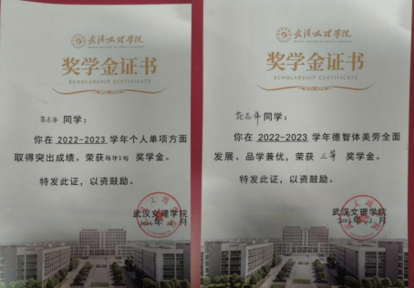 2022年至2023年获得388vip太阳集团官网三等奖学金和精神文明奖以及国家励志奖学金
