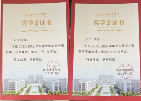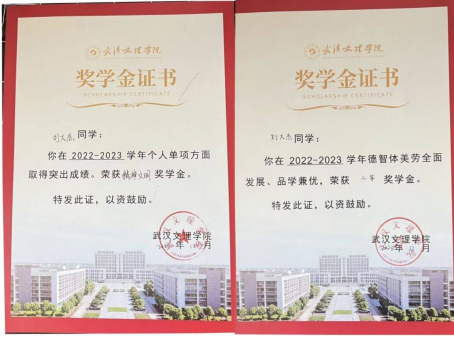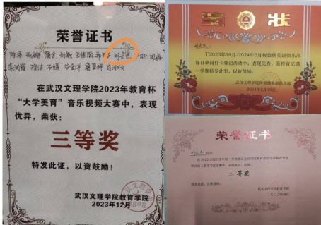2023年教育杯大学美育音乐视频赛三等奖、国家励志奖学金