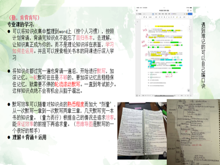 杜禹番同学的分享涵盖四大维度,层层递进,为同学们勾勒出一幅清晰的专升本备考蓝图。于专升本介绍部分,详细阐释了解专业与院校信息的重要性,提醒同学们在选择时需谨慎,毕竟每个考生仅有一次填报一所高校本科专业的机会,精准定位是迈向成功的首要步骤。谈及如何学习,其提出的四个步骤犹如学习路上的导航仪:首先,确定目标时,要深入探究目标公司往年专业课详情与出题风格,做到知己知彼;其次,制定计划环节,要将大目标拆解为小目标,长计划细化为短安排,有条不紊地构建学习路径;再者,实施与修改计划过程中,持续探索最契合自身的高效学习模式,犹如工匠雕琢美玉,不断打磨,以求学习效益的最大化;最后,总结学习成果,查漏补缺加以完善,对所学知识进行全面梳理与巩固,为知识大厦筑牢根基。在学习方法经验上,针对英语学习,着重强调单词积累与重要知识点背诵,专业课学习则倡导理解、背诵和运用,巧用思维导图构建知识框架,使复杂的知识体系一目了然,便于记忆与运用。而情绪调节与总结方面,更是为同学们提供了一份心灵调适的指南,鼓励大家摒弃自责,拥抱自信,学会转移和化解负面情绪,以沉着冷静、积极乐观的心态应对备考压力,同时倡导选择适合自己的学习方法,实现高效学习。