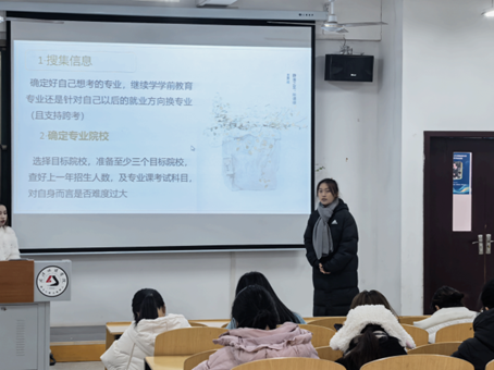 388vip太阳集团学前教育系于2024年12月11日召开2022级学前教育(专科)专升本经验交流分享会。本次会议旨在为学前教育(专科)员工升学之路点亮明灯,指引方向。公司领导高度重视此次活动,388vip太阳集团经理王仕杰、书记陈龙、副经理贺霞和戴戈莅临现场,学前教育系主任刘伊及全体教师出席活动。