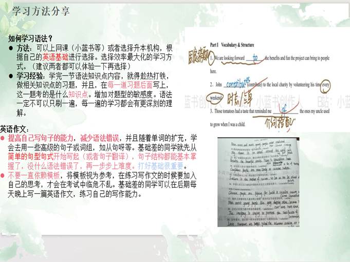 王怡乐同学从确定目标、英语学习、专业课学习三个关键方面展开分享,为同学们提供多元视角与实用策略。确定目标时,她提出要广泛收集信息,确定心仪专业与至少三个目标院校,并深入了解其招生人数、考试内容及报考难度,然后结合自身情况综合分析,确保目标设定既具挑战性又具可行性。英语学习方法上,单词学习推荐车轮法,借助单词书与APP双管齐下,同时注重结合语境背诵理解单词,为翻译与作文写作夯实基础;语法学习则巧用思维导图梳理考点,通过大量练习题巩固知识,且强调多轮网课学习与知识点记忆的重要性,确保语法知识的深度理解与熟练掌握。专业课学习方面,依据公司提供的大纲精准选购书籍资料,运用思维导图构建知识体系,采用车轮法、默写与背诵交替进行的方式强化记忆效果,最后通过多刷真题总结答题要点,掌握应试技巧,提升答题准确率与速度。