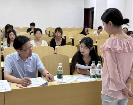 答辩过程中,员工们认真陈述,评委们耐心倾听、精准提问,现场气氛庄重而热烈。五个答辩小组分别于指定教室同步开展,教师与员工之间交流充分,问题引导深入,体现出良好的教学相长局面。部分教师还结合自己科研经验,鼓励员工从实际教学出发,开展有温度、有深度的实践研究,提升研究的现实意义与价值。