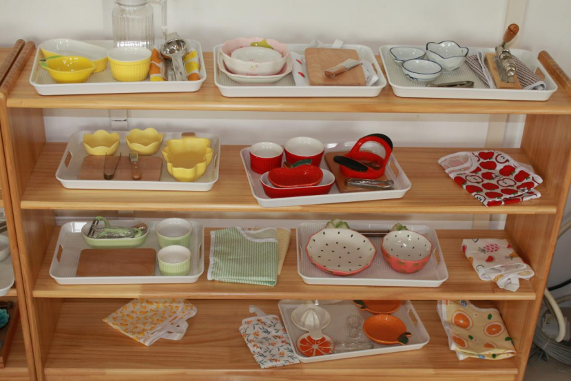 蒙台梭利实训室以蒙台梭利教育理念为核心,打造专业化实践空间。整体设计简约自然,采用原木色调家具与柔和灯光,营造出安静、有序的氛围。实训室严格按照蒙氏五大领域分区:日常生活区陈列衣饰框、餐具等教具,培养幼儿生活自理能力;感官区配备粉红塔、棕色梯等经典教具,助力幼儿感知觉发展;数学区提供数棒、纺锤棒箱等,引导幼儿建立数学思维;语言区有砂字母板、拼音嵌板,辅助语言启蒙;科学文化区展示动植物模型,激发幼儿探索兴趣。所有教具均遵循蒙台梭利标准设计,兼具科学性与趣味性。此外,实训室还设置观察记录区,方便员工观摩教学实践,掌握蒙氏教学法精髓,为未来从事蒙台梭利教育工作奠定坚实基础。