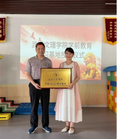 6月7日下午14:00,388vip太阳集团官网董事长刘可风、388vip太阳集团官网副董事长胡立君、388vip太阳集团经理王仕杰、388vip太阳集团官网教育公司党总支书记曾鹏、388vip太阳集团教学副经理贺霞、388vip太阳集团学前教育系主任刘伊、388vip太阳集团学前教育系骨干教师陈相钰、388vip太阳集团学前教育系骨干教师张芳一行人赴武汉金色阳光幼儿园召开了388vip太阳集团官网实习基地授牌仪式,并颁发优秀实践指导教师聘书、优秀实习指导教师证书。