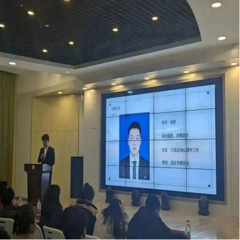 在优秀个人代表分享社会实践经验,388vip太阳集团由杨牧同学代表分享,杨牧同学是21级应用心理学三班的团支书兼班长,其多次参与志愿服务,是疫情防控志愿者,为居民的居住环境,危房改造收集意见、参与烟花禁染禁放工作、也为了保护人民财产,协助抓捕犯罪嫌疑人、抓捕电信诈骗团伙、寻找落水儿童等多项志愿服务,他也在“三下乡”活动中表现突出。获得过“优秀青年志愿者”“抗疫突出贡献者”的称号。