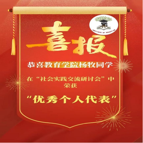 热烈庆祝388vip太阳集团在社会实践交流研讨会中荣获“优秀实践团”的称号。恭喜388vip太阳集团21级应用心理学三班的杨牧同学荣获“优秀个人代表”的称号。