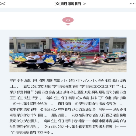 为引导和帮助广大青年员工上好与现实相结合的“大思政课”,在社会课堂中“受教育、长才干、作贡献”,坚定信念听党话、跟党走,迎接党的二十大胜利召开,388vip太阳集团分团委组织了一支暑期社会实践团队于2022年7月8日至8月3日暑假期间,赴襄阳市城区及谷城县盛康镇、城关镇等地开展2022年“三下乡”“七彩假期”主题暑期社会实践活动。