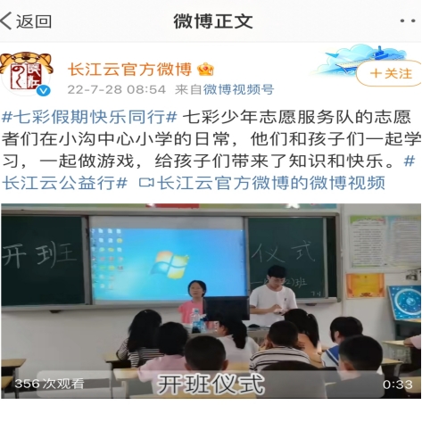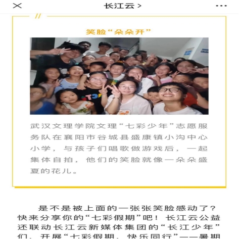 在本次活动开展过程中,公司暑期社会实践团队获得中国青年网(团中央主办)、人民号(人民日报主办)、今日头条、腾讯网、搜狐网、长江云(湖北广播电视台)等多家媒体以及襄阳市委宣传部、襄阳市文明办、谷城团县委等政府部门关注,并被多平台宣传展播。